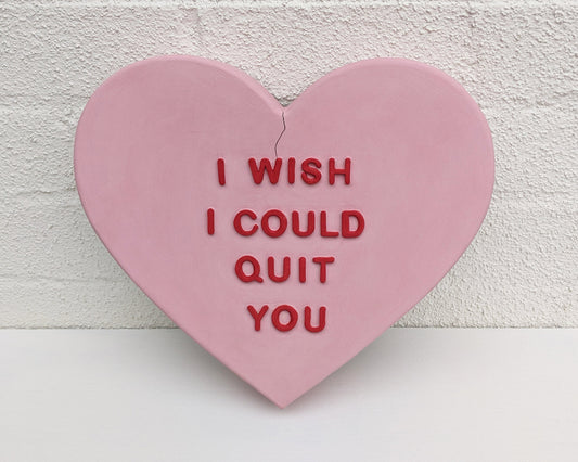 "Broken Heart/ I WISH I COULD QUIT YOU" Porcelain Jumbo Conversational Heart