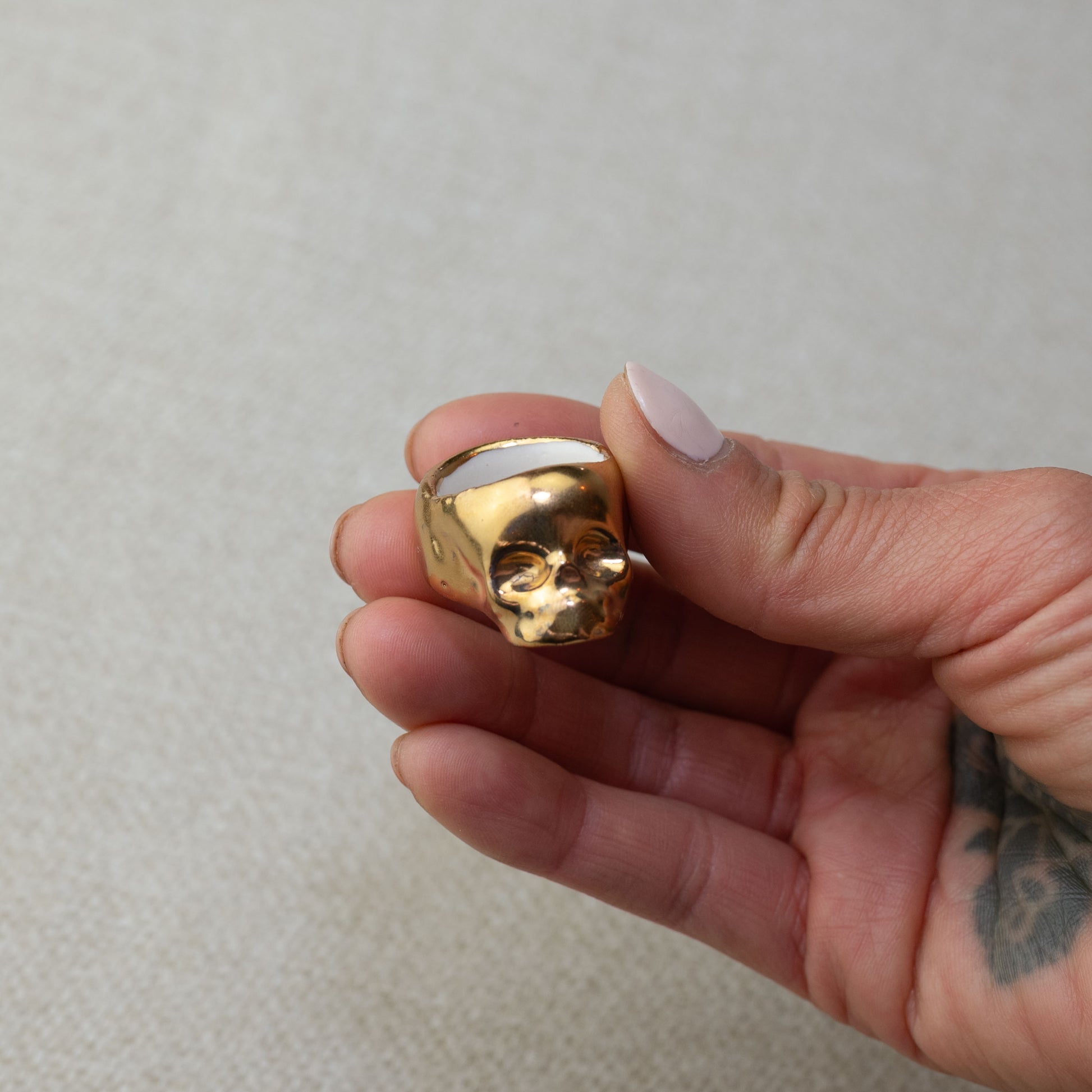 Handle with care: This ring is made with porcelain which is ceramics after all, please take care when wearing and abstain from dropping or banging it against hard surfaces or doing manual labor while wearing. It does not have the same durability as metal jewelry and stresses as described above may cause damage. The gold luster is a surface decoration and will eventually show signs of wear, especially if you wear the ring next to other rings.
