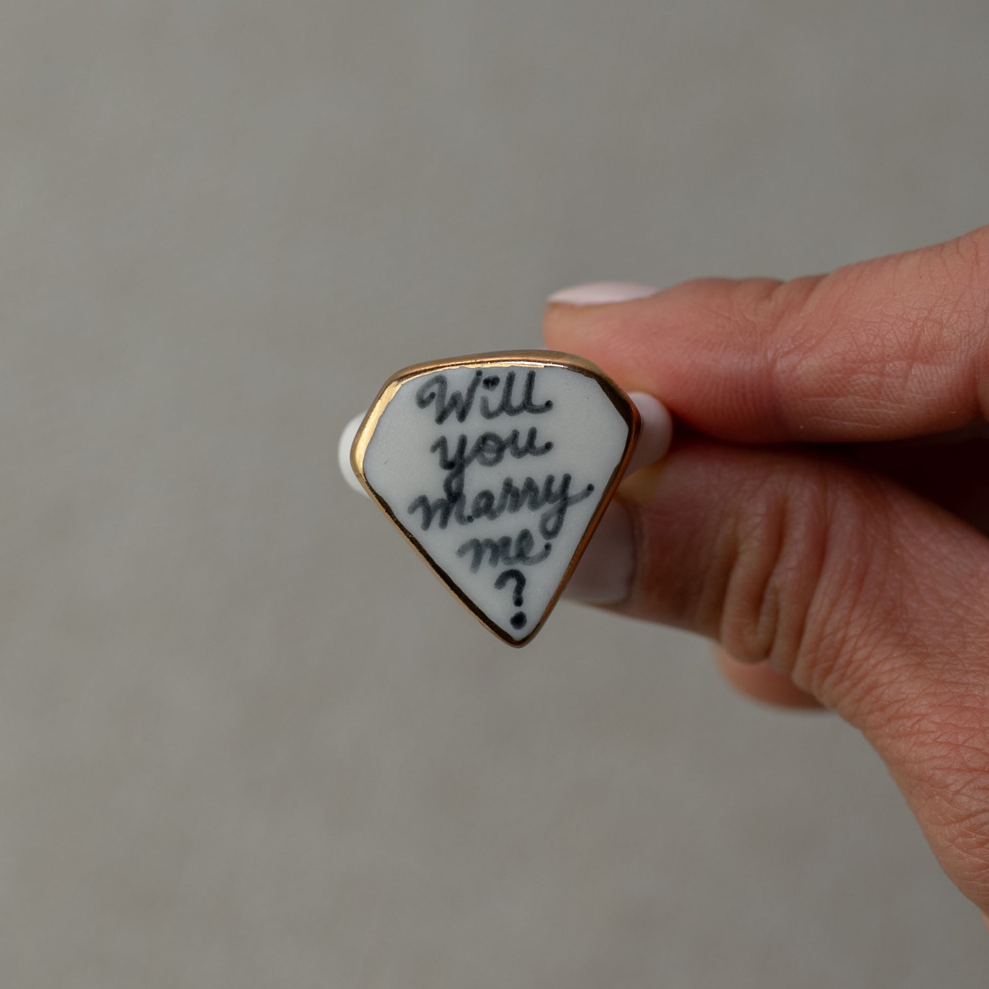 Handle with care: This ring is made with porcelain which is ceramics after all, please take care when wearing and abstain from dropping or banging it against hard surfaces or doing manual labor while wearing. It does not have the same durability as metal jewelry and stresses as described above may cause damage. The gold luster is a surface decoration and will eventually show signs of wear, especially if you wear the ring next to other rings.